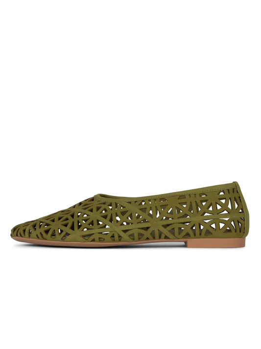 Green Faux Suede Boho Cutout Almond-Toe Flats