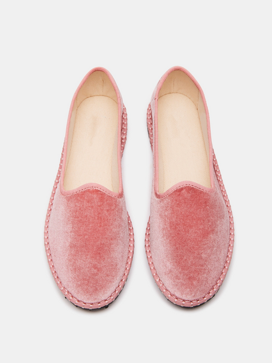 Velvet Round-Toe Slip-On Soft Loafer Flats - Pink