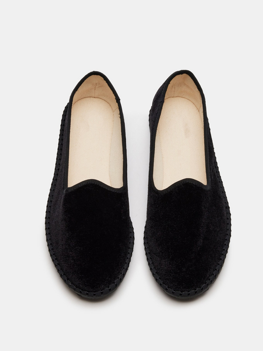 Velvet Round-Toe Slip-On Soft Loafer Flats - Black