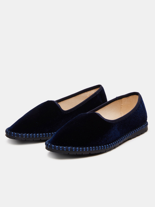 Velvet Round-Toe Slip-On Soft Loafer Flats - Navy Blue
