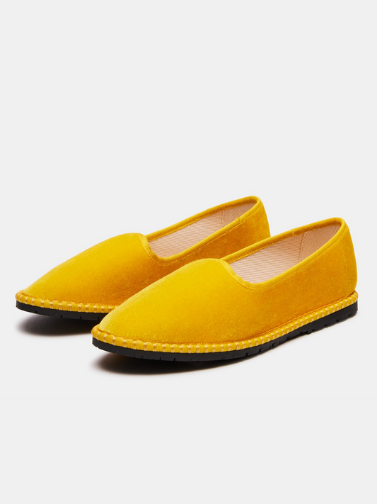 Velvet Round-Toe Slip-On Soft Loafer Flats - Yellow