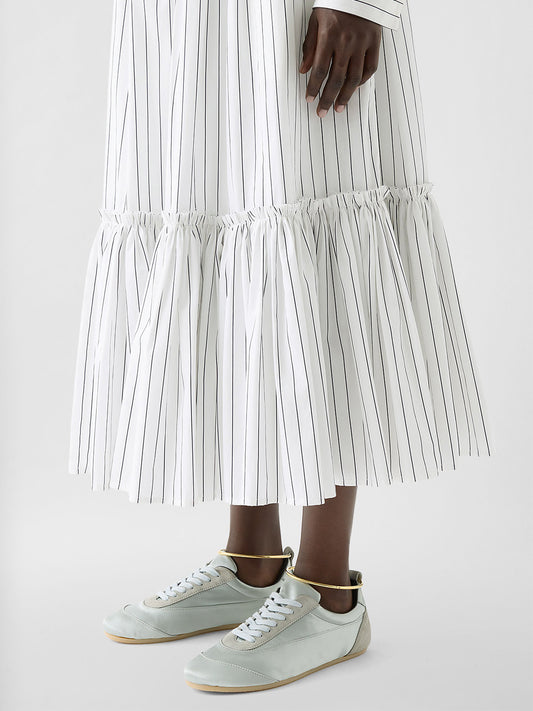 Aqua Satin And Faux Suede Round-Toe Lace-Up Sneakers Flats