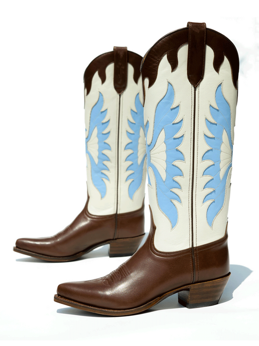 Contrast Tri-Color Snip-Toe Eagle Inlay Wide Calf Knee High Tall Cowgirl Boots