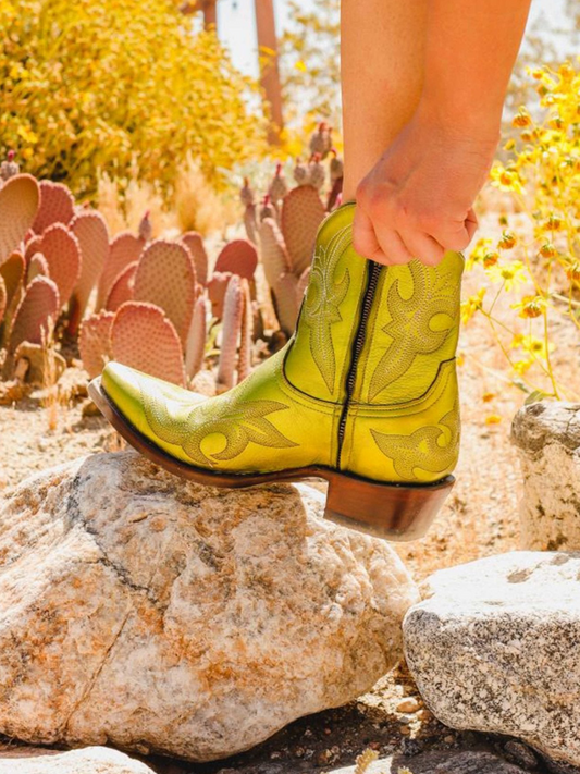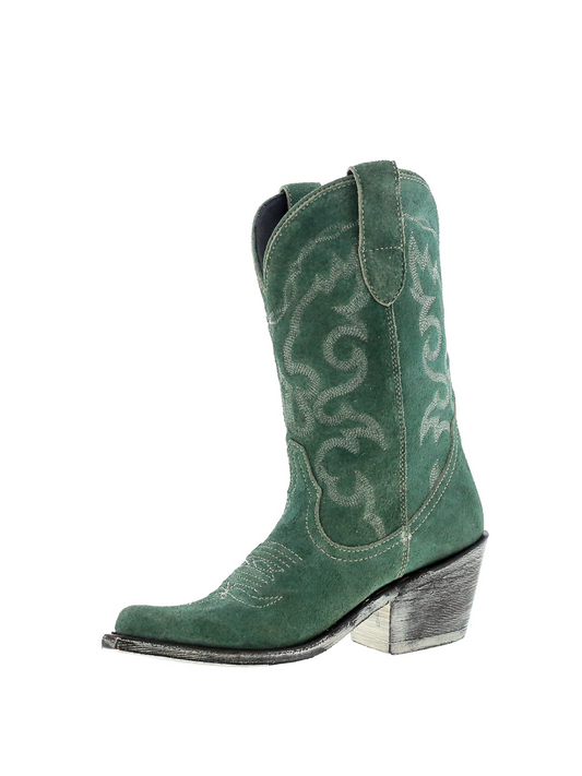 Metallic Snip-Toe Embroidery Full-Zip Mid Calf Cowgirl Boots - Green