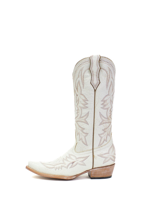 Western Embroidery Snip-Toe Classic Mid Calf Cowgirl Boots – Crinkle White