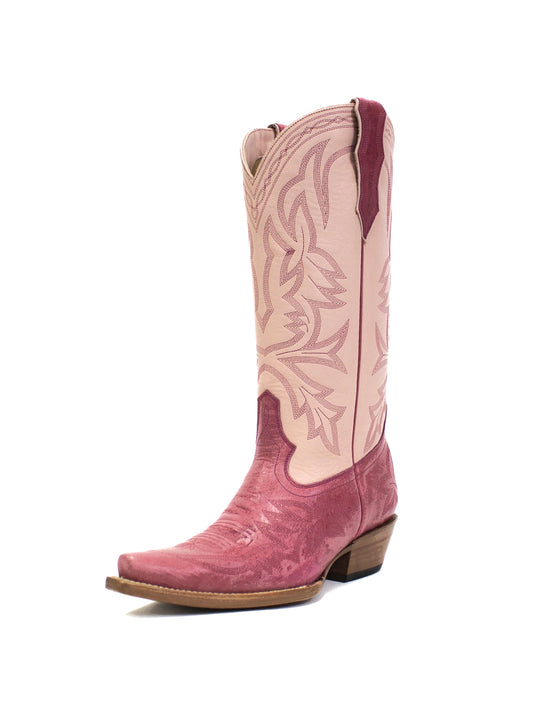 Western Embroidery Snip-Toe Classic Mid Calf Cowgirl Boots – Blush Pink/Pink