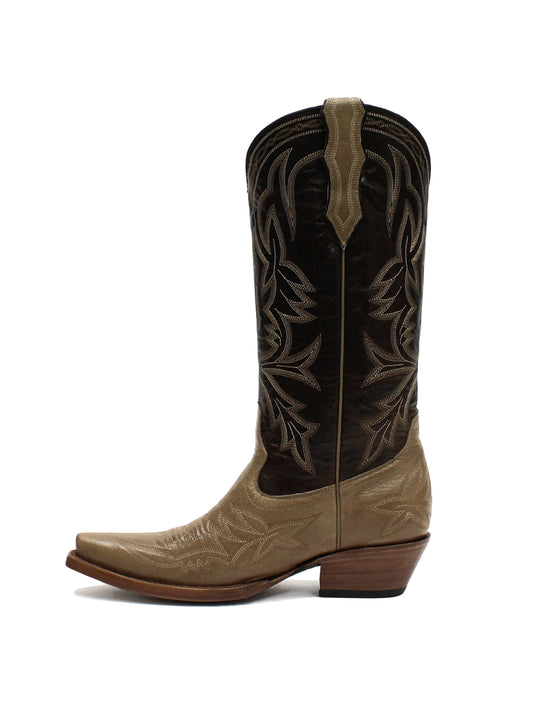 Western Embroidery Snip-Toe Classic Mid Calf Cowgirl Boots – Chocolate/Khaki