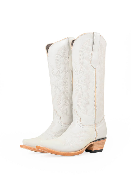 Ivory Snip-Toe Classic Embroidery Mid Calf Cowgirl Boots