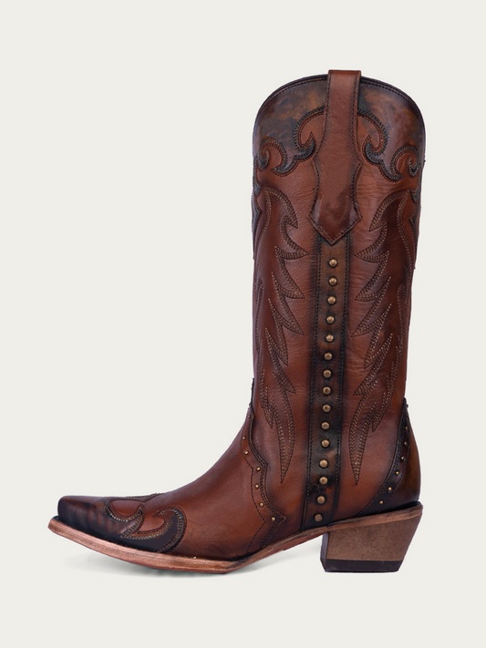 Honey Snip-Toe Inlay Embroidery Wide Mid Calf Cowgirl Boots