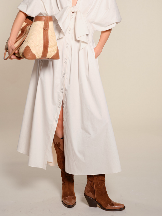 Brown Snip-Toe Cutout Wide Mid Calf Cowgirl Boots