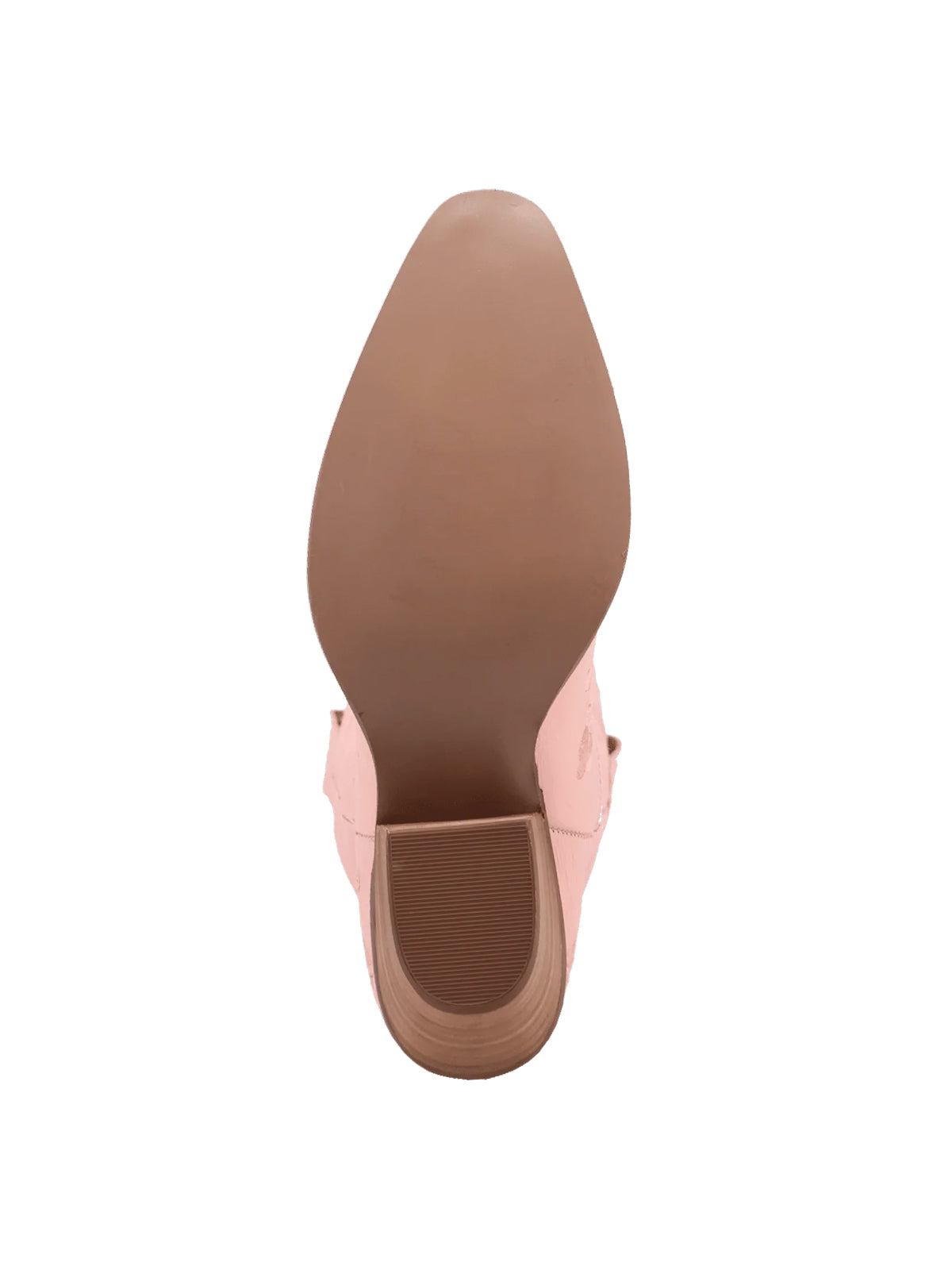 Flowers Embroidery Snip-Toe Mid Calf Cowgirl Boots - Pink