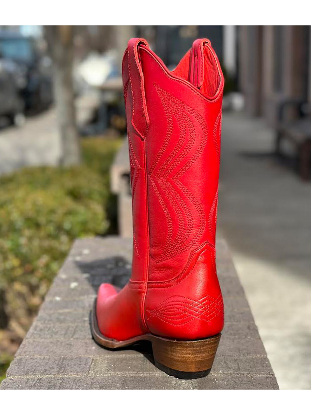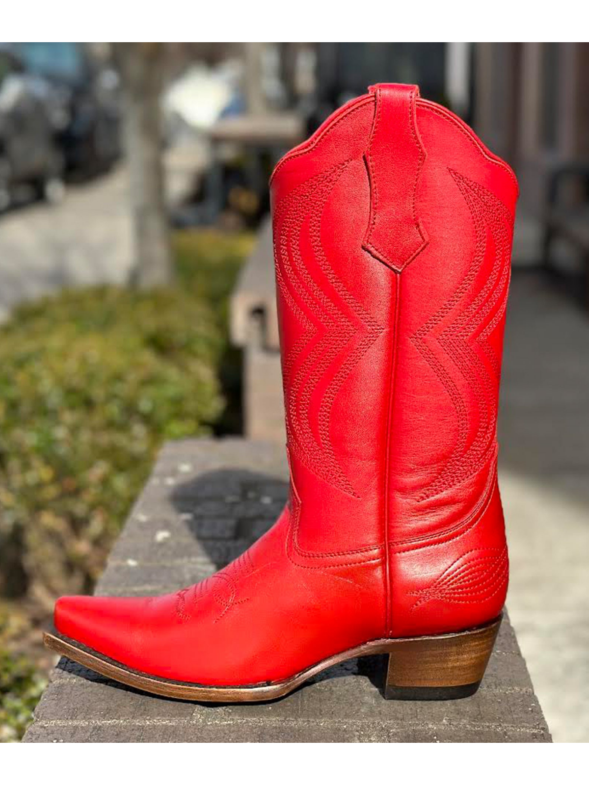 Red Embroidery Tall Snip-Toe Wide Mid Calf Cowgirl Boots
