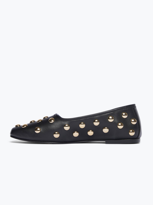 Black Sparkle Rhinestone Round Toe Slip-On Flats
