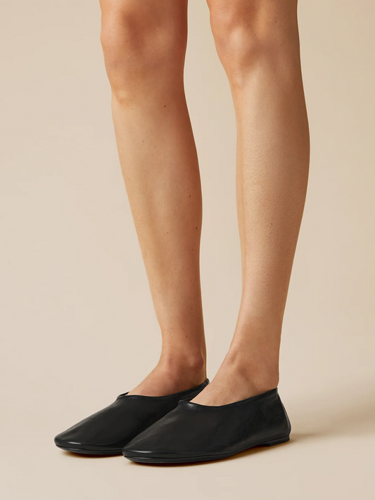 Black Vegan Leather Square-Toe Flats