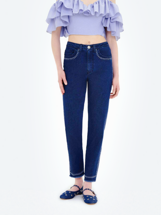 Blue Embroidery Snip-Toe Mid Calf Western Boots For Women