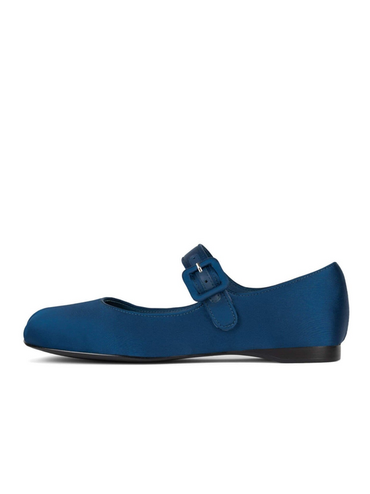 Blue Round-Toe Mary Janes Flats With Thin Buckled Strap