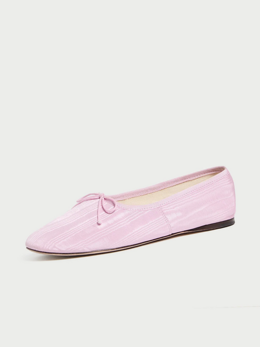 Blush Pink Satin Square-Toe Ballet Classic Flats With Bow