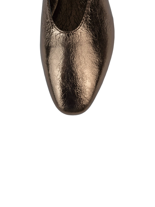 Bronze Metallic Crinkle High-Vamp Almond-Toe Flats