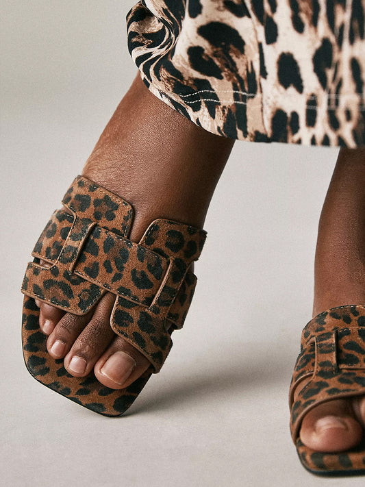 Brown Mesh Square-Toe Embroidery Bridge Strap Ballet Flats