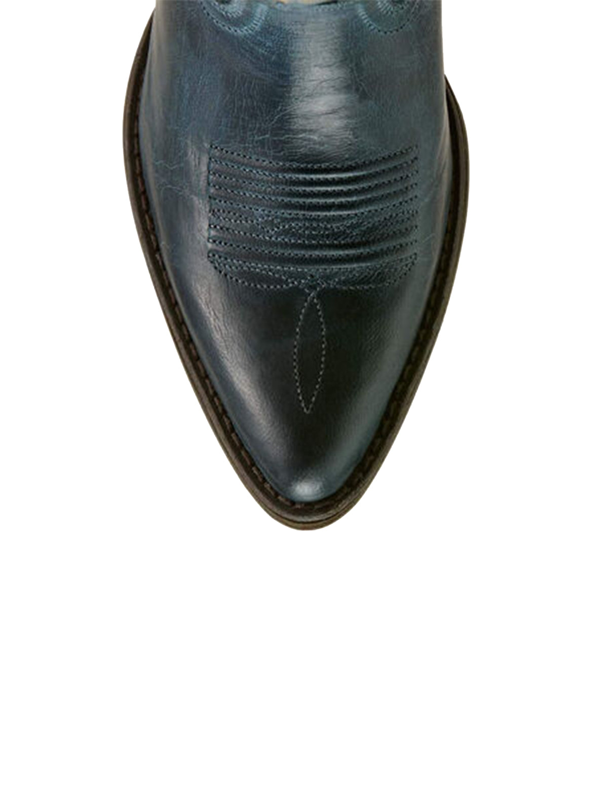 Mid Calf Almond-Toe Embroidery Cowgirl Boots - Dark Denim Blue