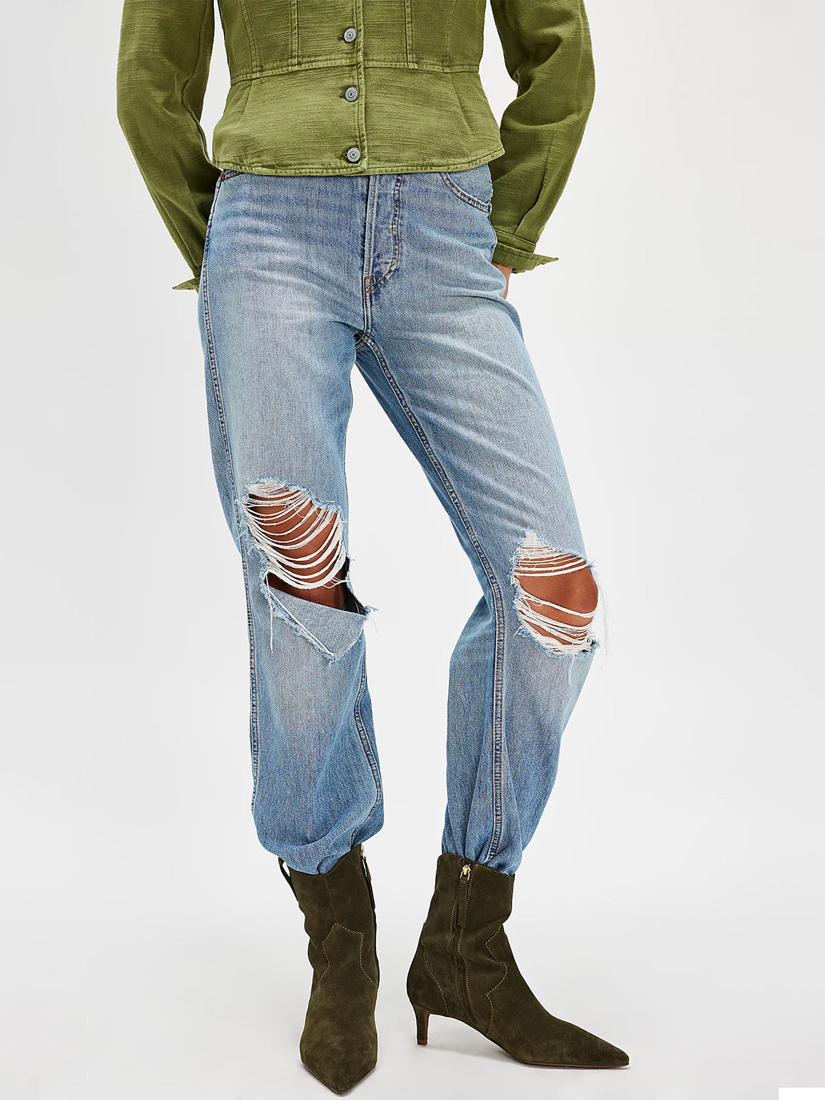Olive Green Faux Suede Pointed-Toe Full-Zip Ankle Stiletto Boots
