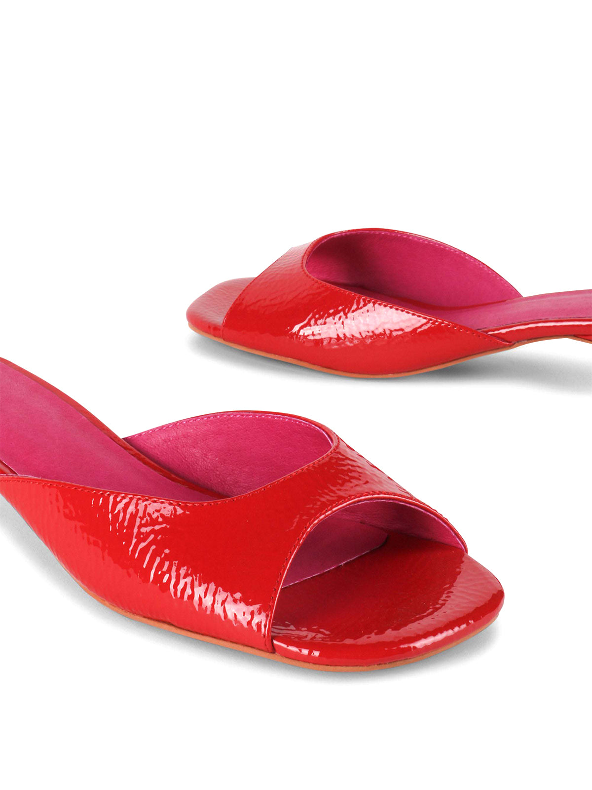 Patent Red Peep Square-Toe Backless Kitten Heels