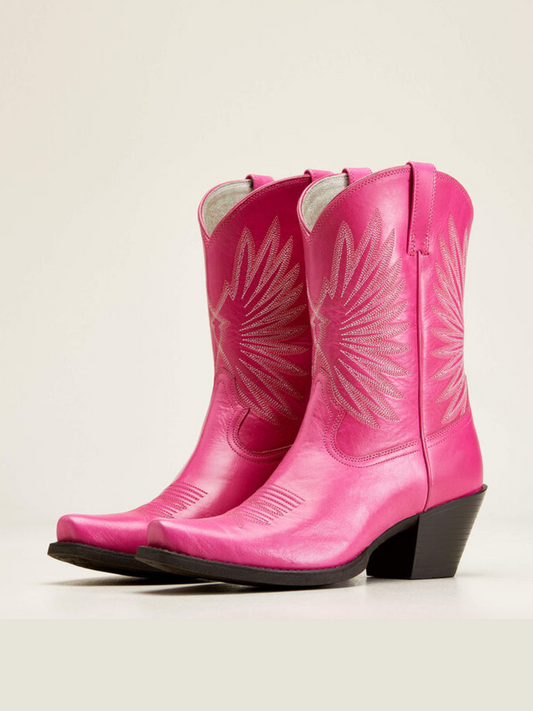 Pink Embroidery Snip-Toe Mid Calf Cowgirl Boots For Women