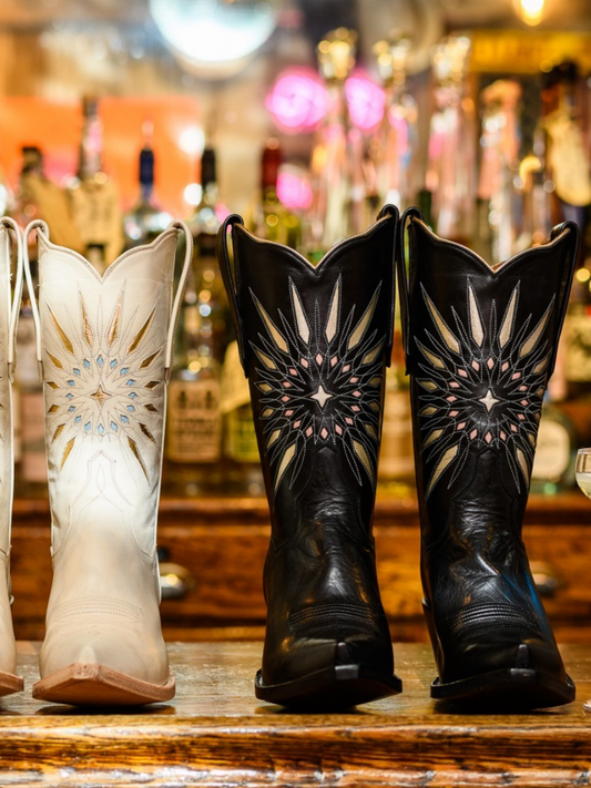 Black Starburst Inlay Snip-Toe Mid Calf Cowgirl Boots
