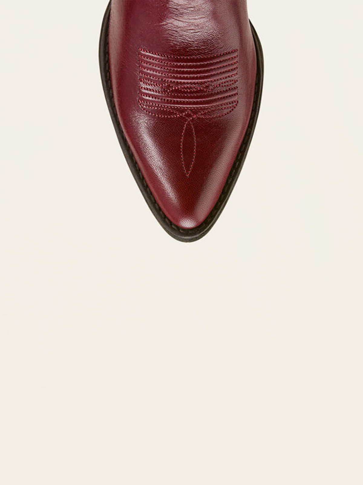 Mid Calf Almond-Toe Embroidery Cowgirl Boots - Burgundy
