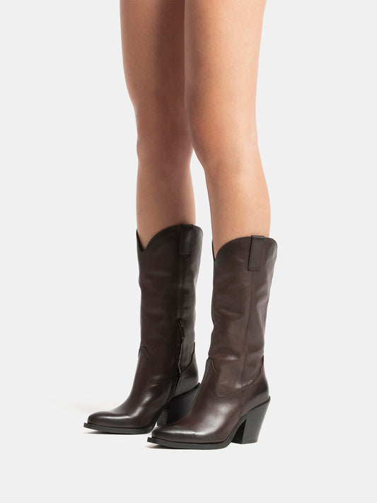 Dark Brown Snip-Toe Simple Half-Zip Mid Calf Classic Cowgirl Boots