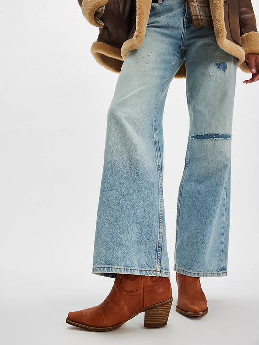 Distressed Tan Snip-Toe Western Embroidery Mid Calf Cowgirl Boots