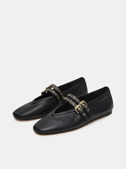Black Square-Toe Double Bridge Straps Ballet Flats