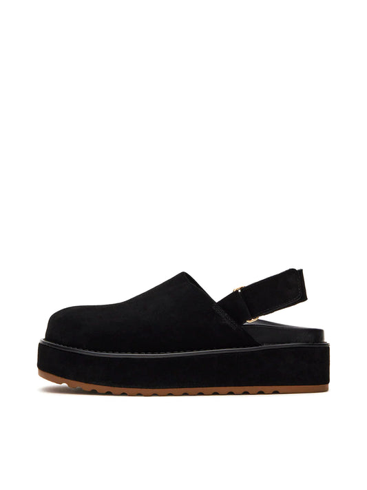 Black Faux Suede Round-Toe Slingback Platform Shoes
