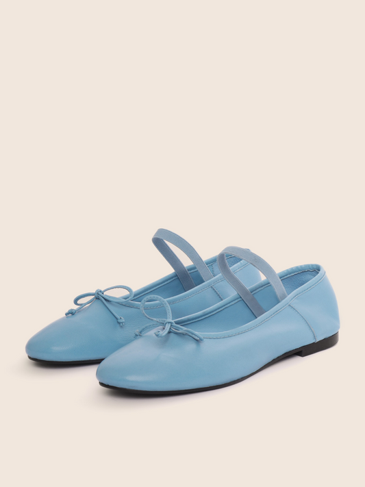 Sky Blue Bow Ballet Flats Mary Janes With Elastic Band