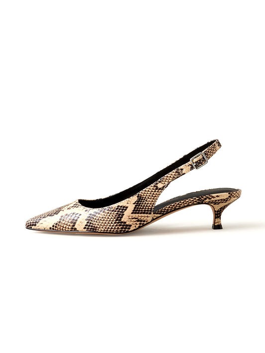 Snakeskin Print Pointed-Toe Mary Jane And Back Strap Kitten Heels