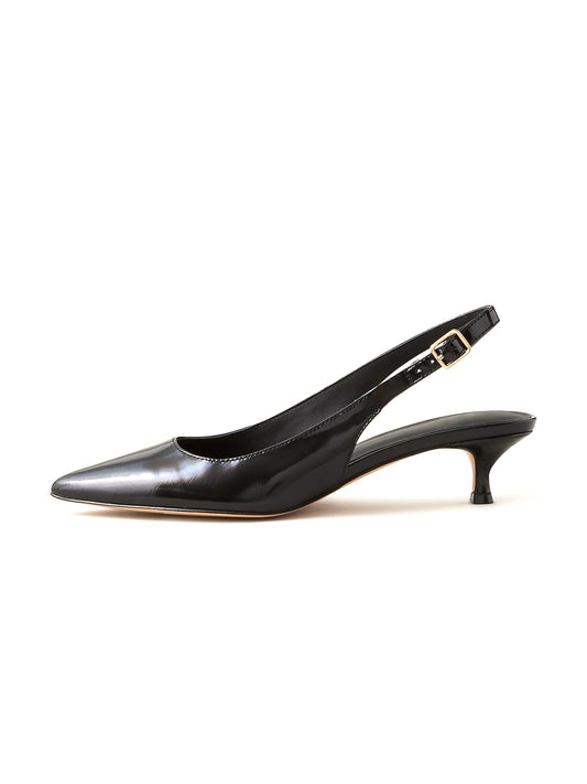 Black Pointed-Toe Mary Jane And Back Strap Kitten Heels