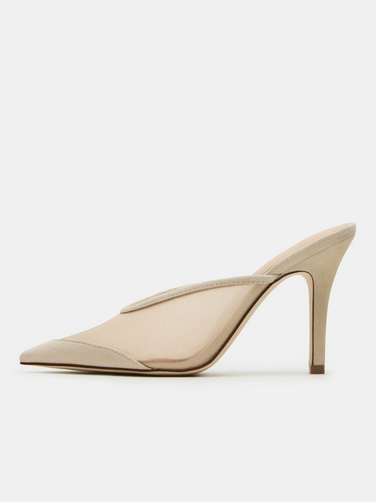 Blush Pink Contrast Mesh And Vegan Leather Pointed-Toe Slip-On Pump High Heels