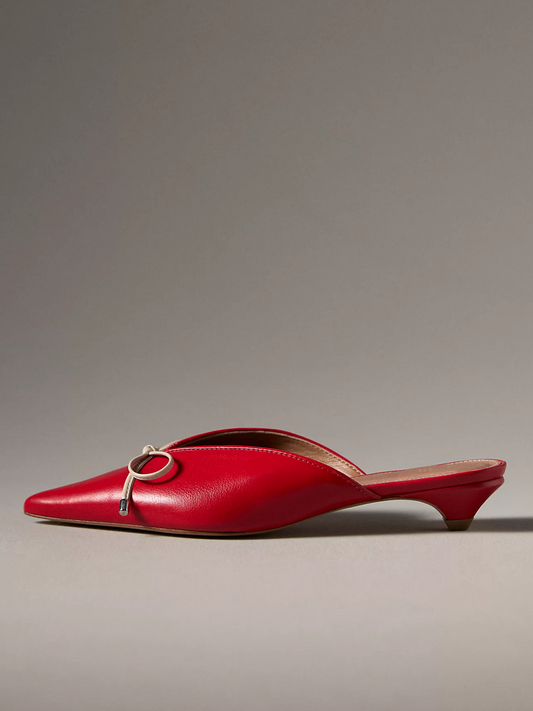 Red Pointed-Toe Slip-On Kitten Heels With Bow