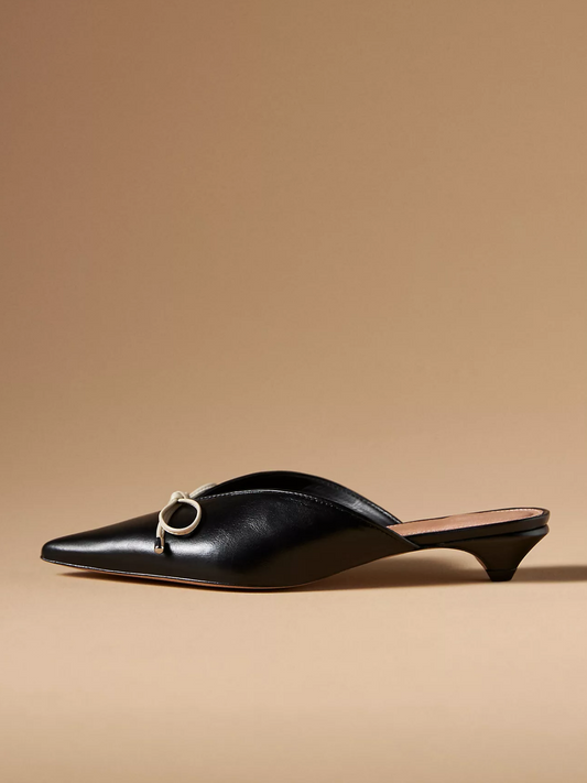 Black Pointed-Toe Slip-On Kitten Heels With Bow