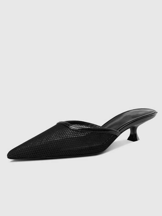 Patent Black Slip-On Mesh Pointed-Toe Kitten Heels