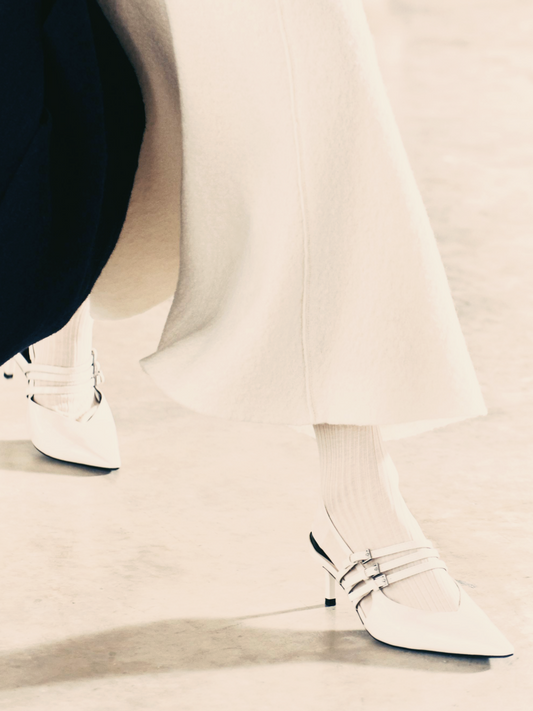 Cream Patent Pointy Slingbacks Kitten Heels Pumps With Triple Buckled Straps