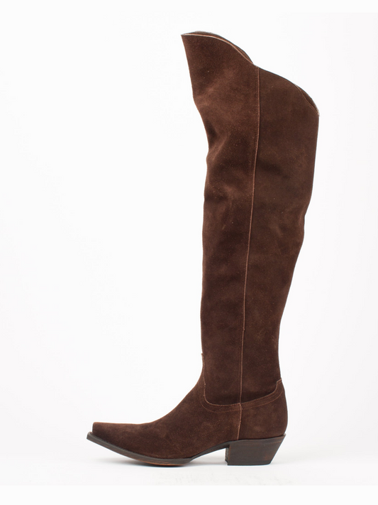Tobacco Faux Suede Snip-Toe Scalloped Top Half-Zip Tall Knee High Cowgirl Boots