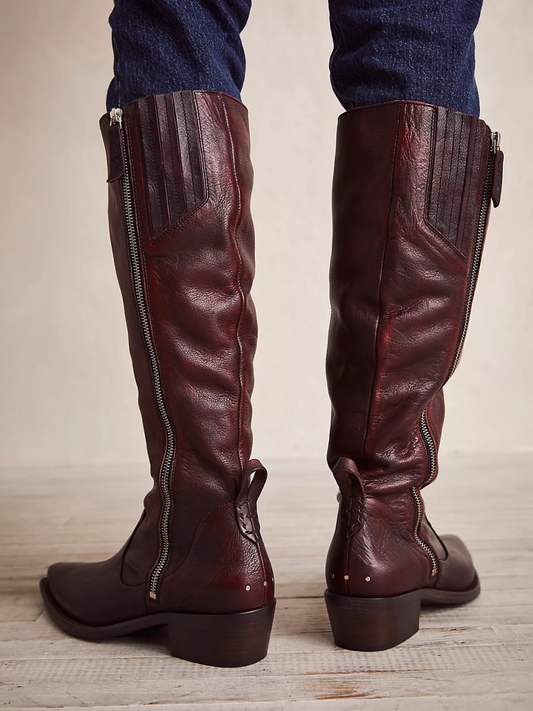 Chocolate Snp-Toe Side Full-Zip Mid Calf Cowgirl Boots