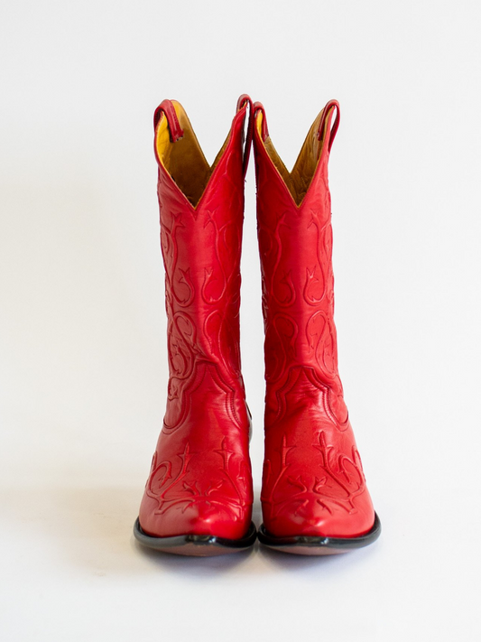 Red Snip-Toe Padded Embroidery Mid Calf Cowgirl Boots