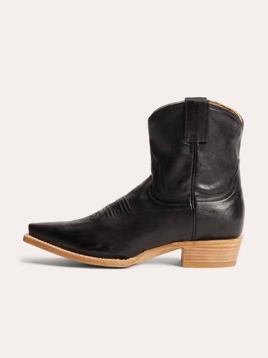 Black Snip-Toe Classic Wide Mid Calf Cowgirl Boots