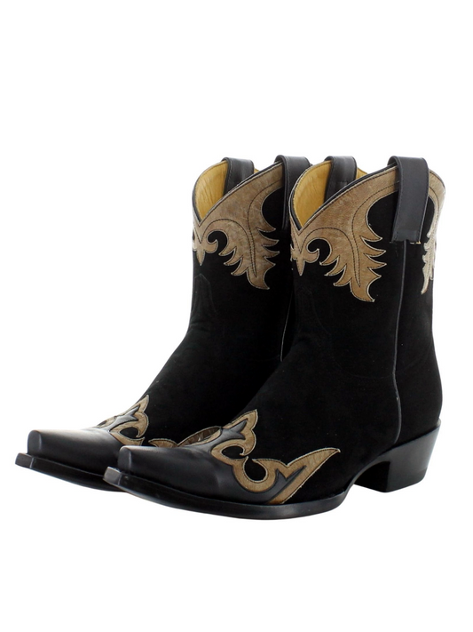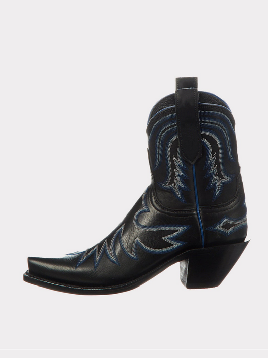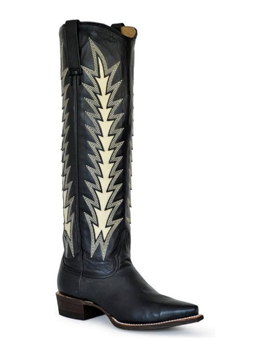 Black Snip-Toe Radial Inlay Wide Mid Calf Tall Cowgirl Boots