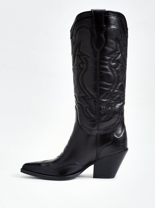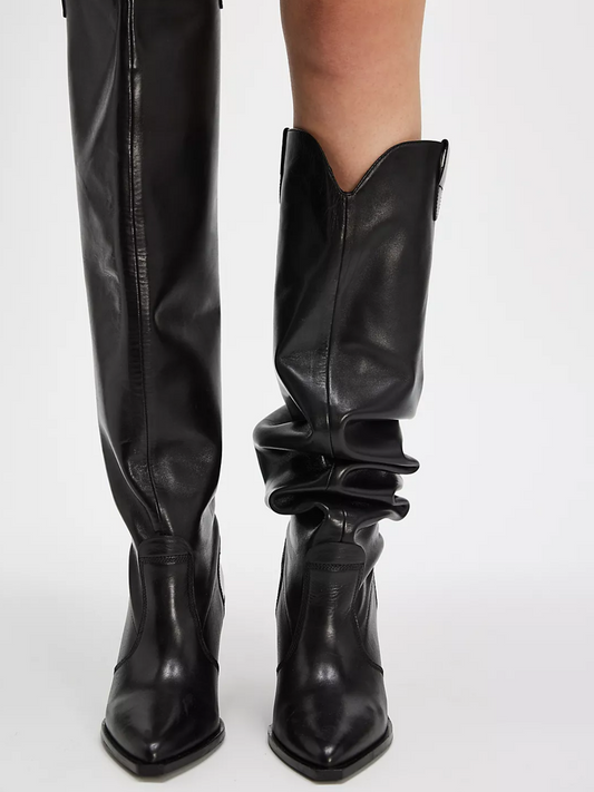 Black Pointed-Toe Slouchy Wide Calf Tall Knee High Western Boots