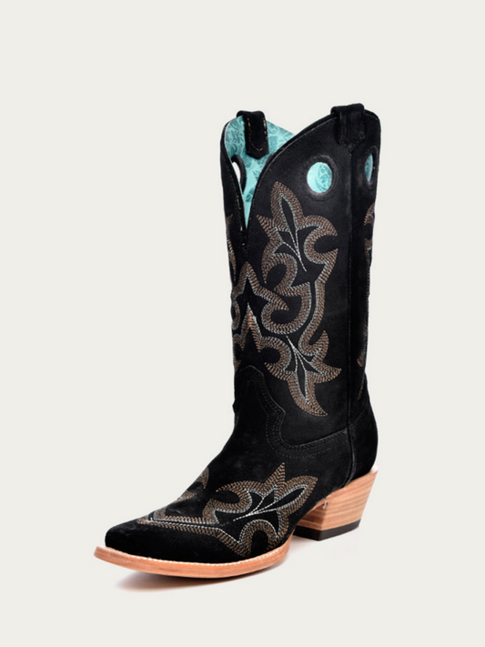 Fancy Embroidery Snip-Toe Wide Mid Calf Cowgirl Boots - Black