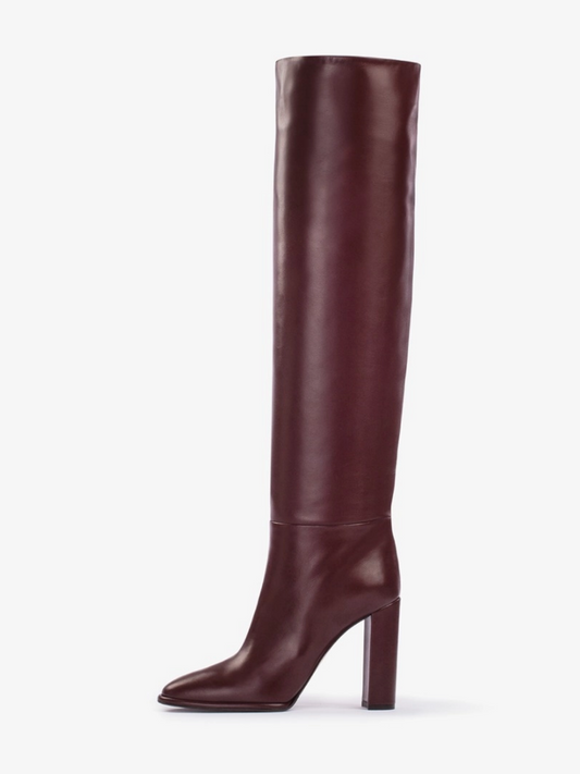 Chocolate Round-Toe Wide Calf Tall Knee High High Heel Boots