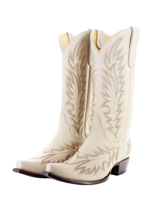 Bone Snip-Toe Embroidery Classic Wide Mid Calf Cowgirl Boots